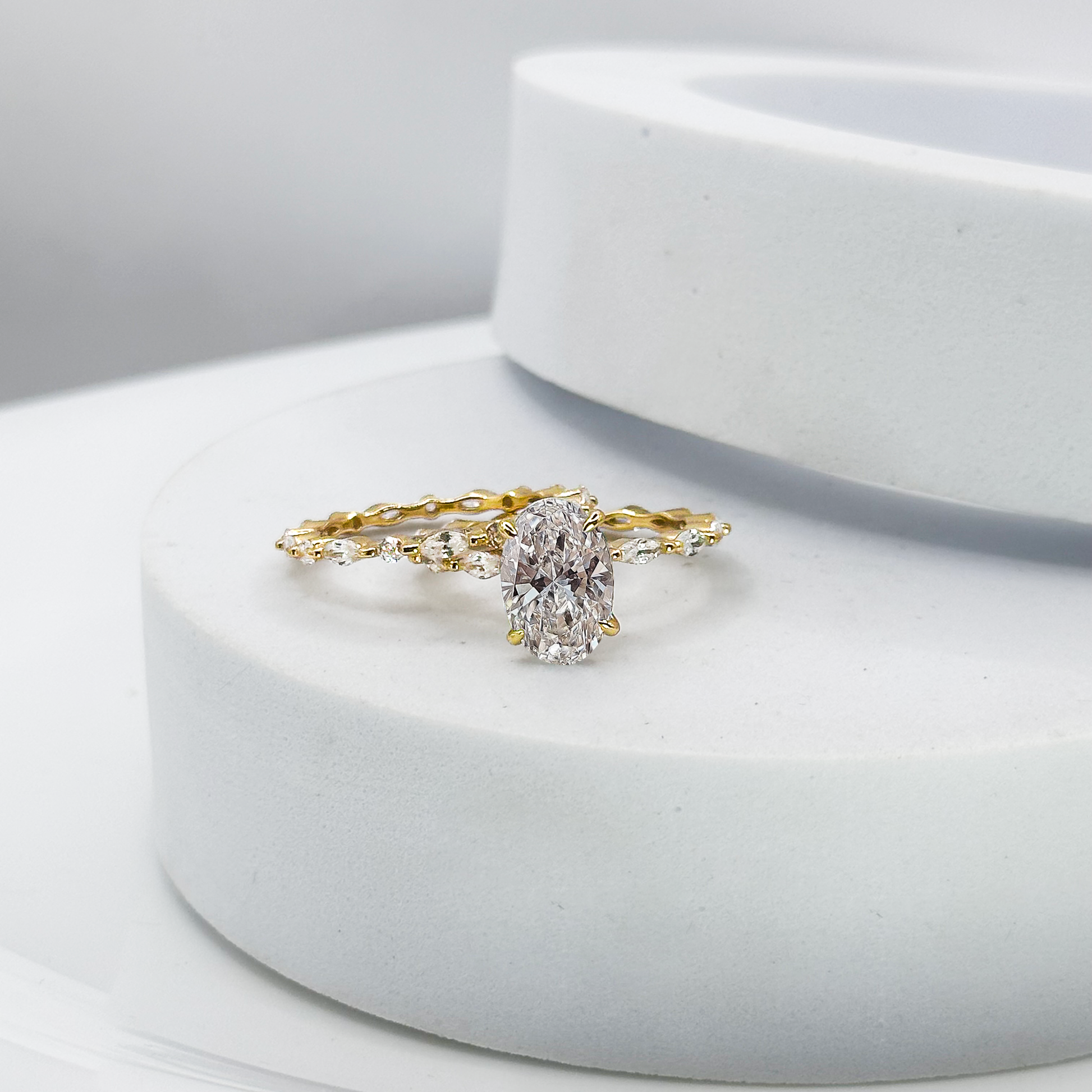 Ornements : entourée d’un halo de petits zirconiums blancs ou transparents, délicatement sertis autour de la pierre centrale, ou bien deux rangs latéraux de zirconiums, pour un éclat maximal.