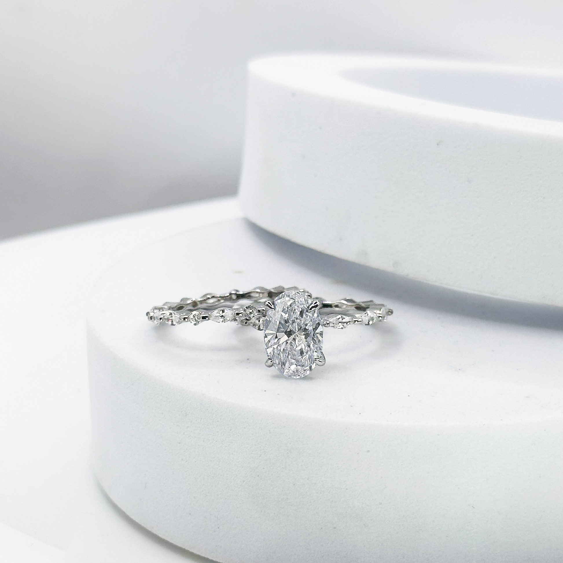 Style : mélange de classicisme et de sophistication — le sertissage rappelle les bagues de style “halo/trilogie”, mais le design peut intégrer des éléments modernes (monture ajourée, lignes géométriques) pour le rendre unique.