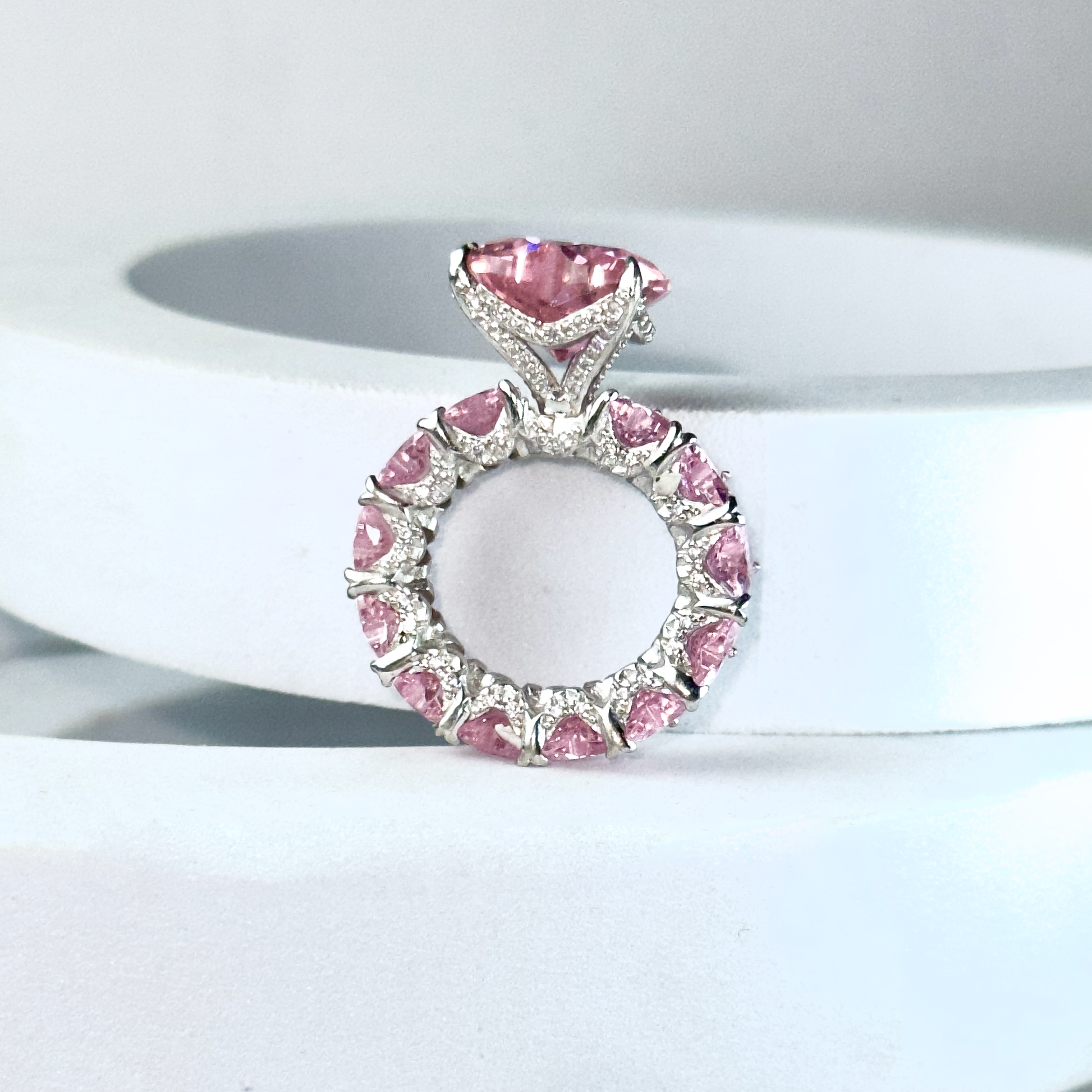 Ornée de pierres roses tout autour : éclat subtil et féminité affirmée